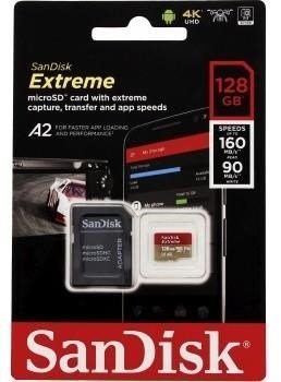 SanDisk Extreme Action Cams and Drones microSDXC 128GB 190MB/s A2 Class 10 V30 UHS-I U3, adapter