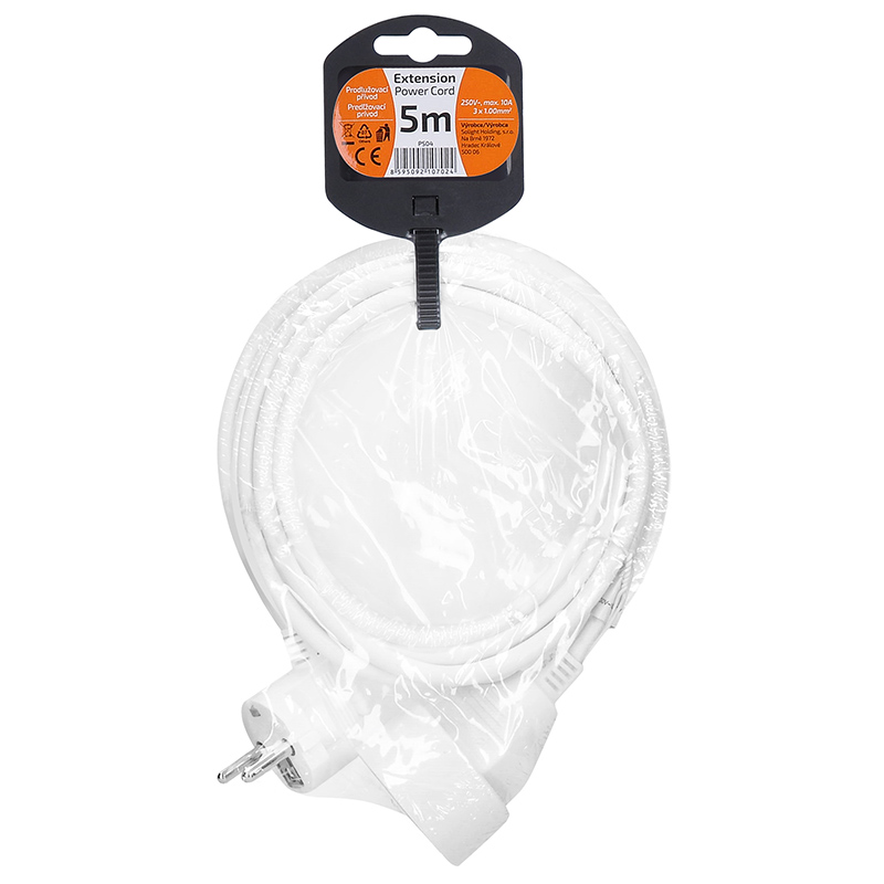 Solight prodlužovací přívod - spojka, 1 zásuvka, 5m, 3 x 1mm2, bílá