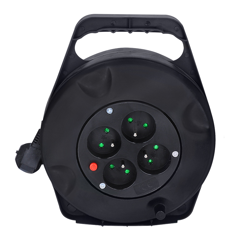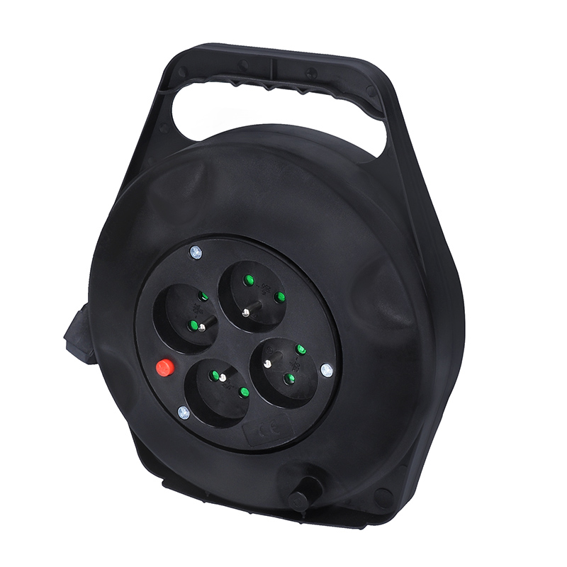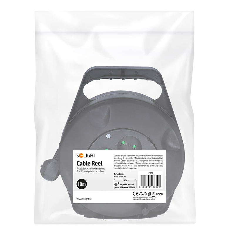 Solight prodlužovací přívod na bubnu, 4 zásuvky, 10m, černý kabel, 3x 1,5mm2