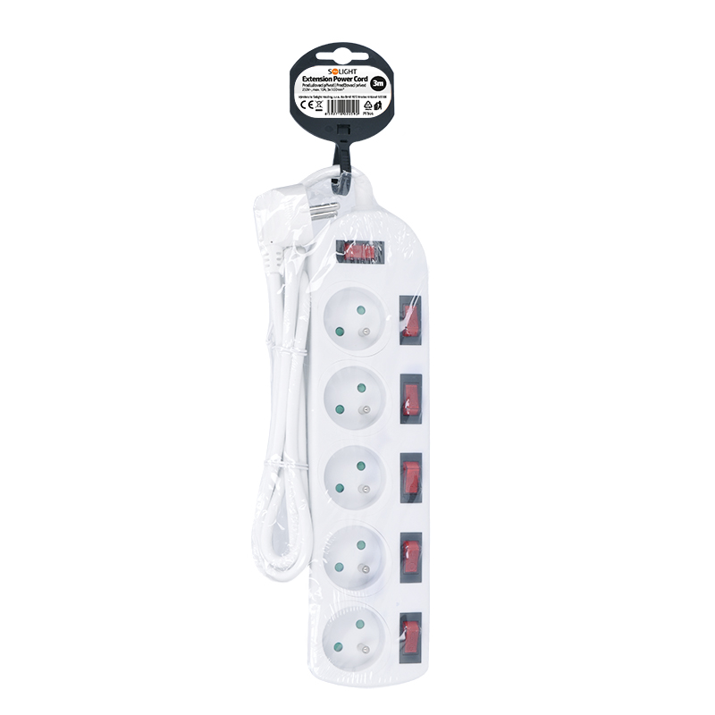 Solight prodlužovací přívod, 5 zásuvek, bílý, 6x vypínač, 3m