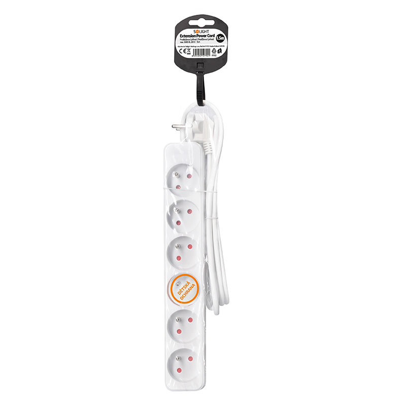 Solight prodlužovací přívod, 6 zásuvek, bílý, 1,5m
