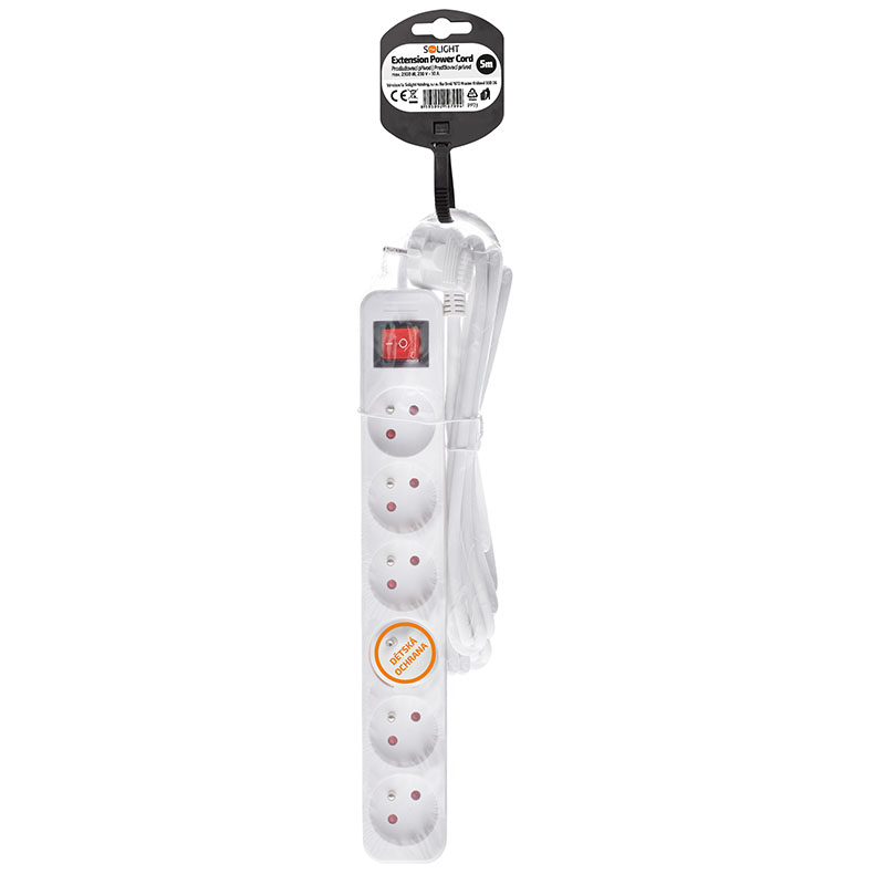 Solight prodlužovací přívod, 6 zásuvek, bílý, vypínač, 5m