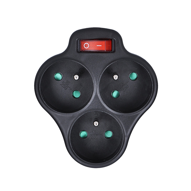 Solight rozbočka, 3 x 10A, černá, vypínač