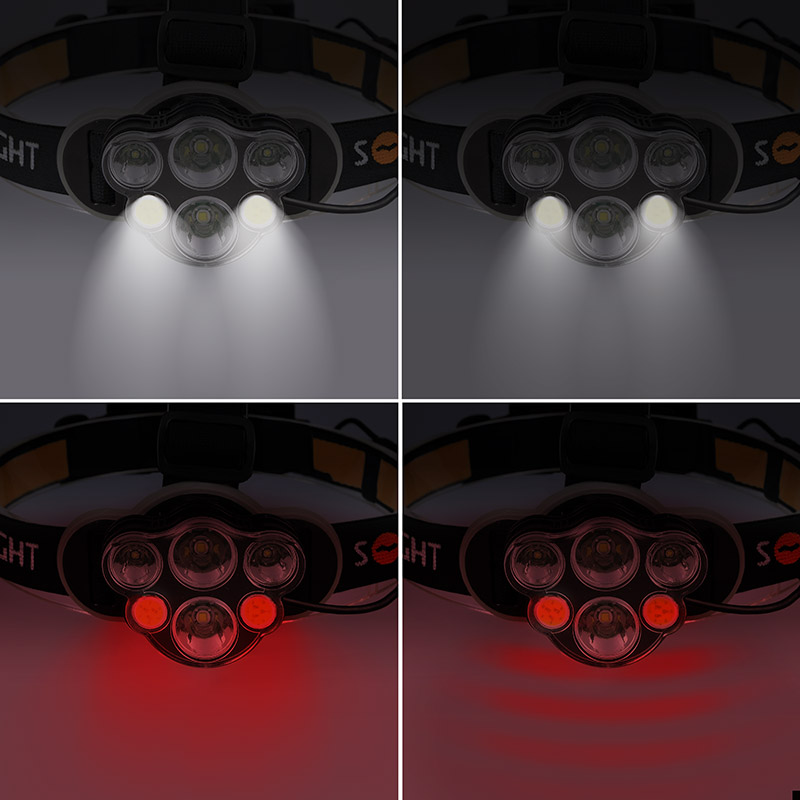 nabíjecí LED čelová svítilna s bílým a červeným světlem