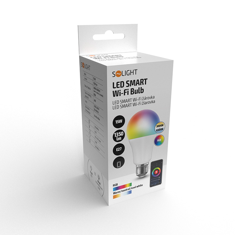 LED SMART WIFI žárovka je ovládaná chytrým telefonem pomocí aplikace v ČJ, AJ a dalších jazycích. Podporuje Wifi 2,4GHZ, Android 4.1 a vyšší a IOS 8.0 a vyšší. Umožňuje nastavovat různé barvy světla (RGB), odstíny bílé (3000-6500K) a intenzitu světla. Žárovku lze zapínat i vypínat klasickým vypínačem.