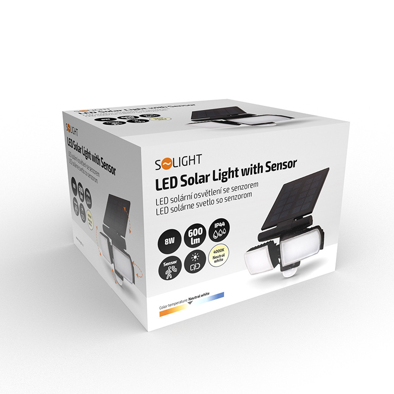 LED osvětlení se solárním panelem a nastavitelným světelným a pohybovým čidlem