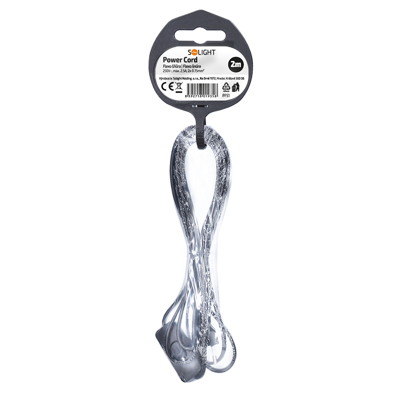 Solight flexo kabel, 2m, 2 x 0,75mm2, černá, plochá, vypínač