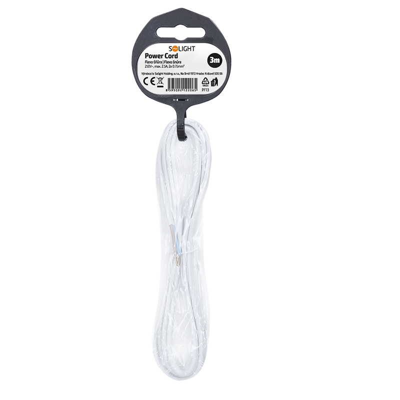 Solight flexo kabel, 2x 0,75mm2, bílá, plochá, vypínač, 3m