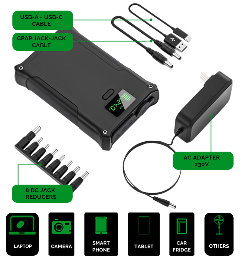 Powerbanka Viking VIDAR I je nejen pro outdoorové aktivity, ale dokáže také výborným pomocníkem při kancelářské činnosti. Součástí balení je 8 redukcí jacků, které jsou kompatibilní s různými typy notebooků, což zajišťuje, že budete schopni nabíjet notebook, svůj nebo kolegův telefon, anebo klidně všechna zařízení zároveň!